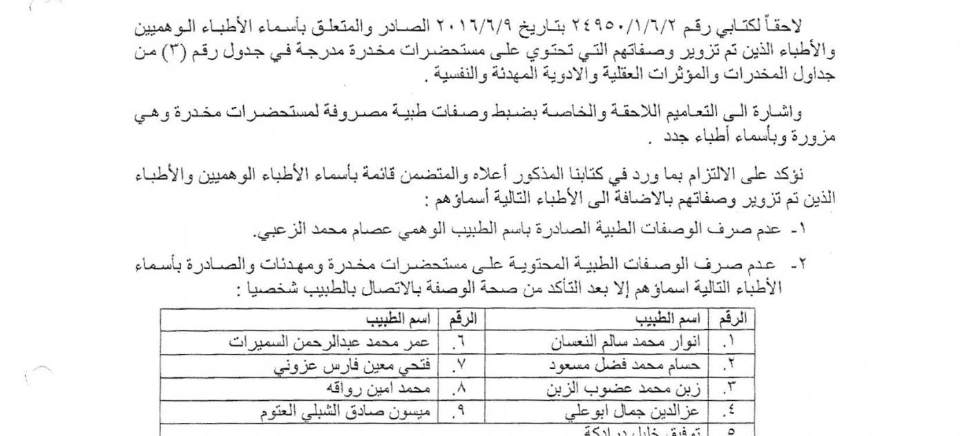 الأخبار ٤ يوليو ٢٠١٩ أسماء الاطباء الوهميين والاطباء الذين زورت وصفاتهم أسماء الاطباء الوهميين والاطباء الذين زورت وصفاتهم